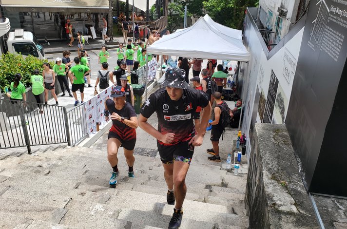 Looking up the 120 metres of Shing Wong steps from Bridges Street to Caine Road, it seemed impossible that the total elevation gain was a mere 20 metres - demoralising almost. The final three banks of steps were dubbed the Hillary Step, as they seemed almost vertical.